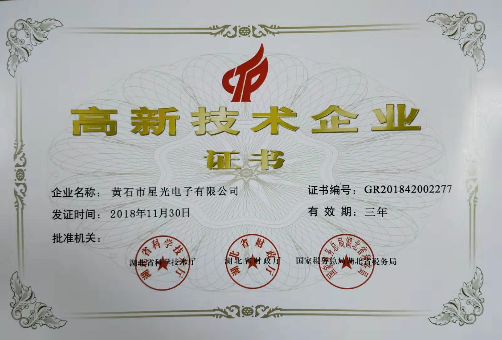 公司于2018年11月取得國家高新科技企業(yè)的資質(zhì)并通過2018湖北省規(guī)模以上企業(yè)的認定。